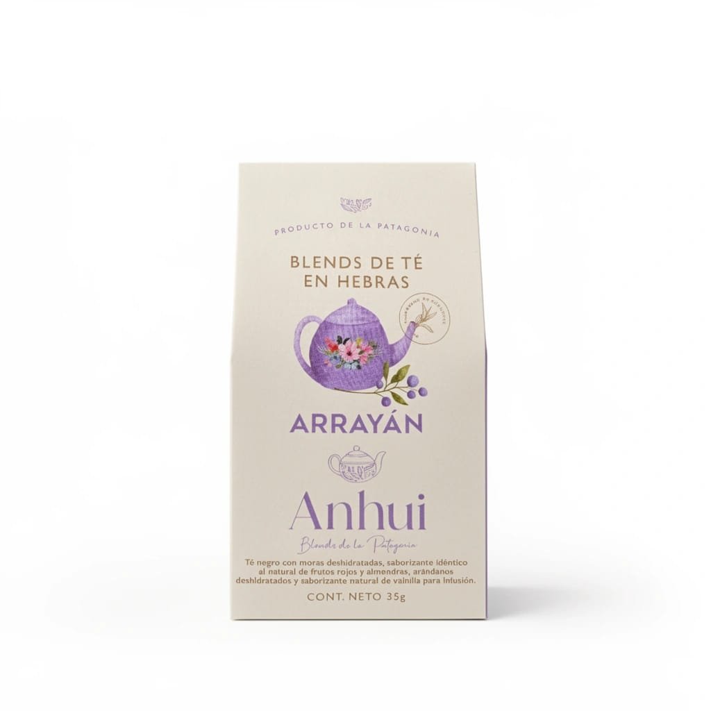 DESCRIPCION: Hebras de té negro orgánico grado FOP*, moras y arándanos deshidratados, perfumado con esencia de vainilla, frutos rojos y almendra.