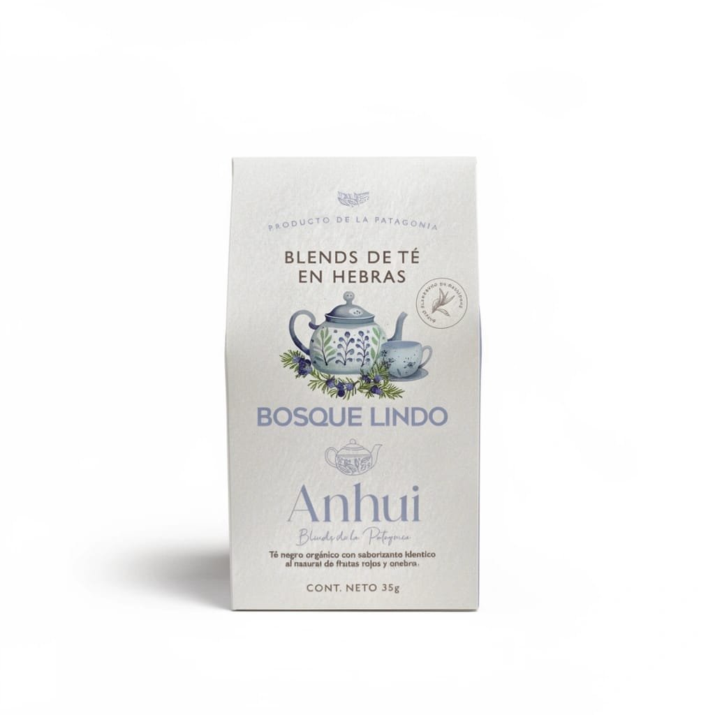 DESCRIPCION: Hebras de té negro orgánico grado FOP*, bayas de enebro, perfumado con esencia de frutos del bosque.